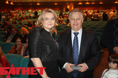 Наконец-то, ряду в седьмом замечаю знакомые все лица – лидер партии коммунистов Петр Симоненко с супругой. Сам собой напрашивается вопрос – либо он ходит на все мероприятия, устраиваемые в «Украине» (не иначе как блат со времен Совка остался – ох, уж эти мне коммунисты), либо пришел сюда на посиделки «Вечернего квартала» и остался с ночевкой.