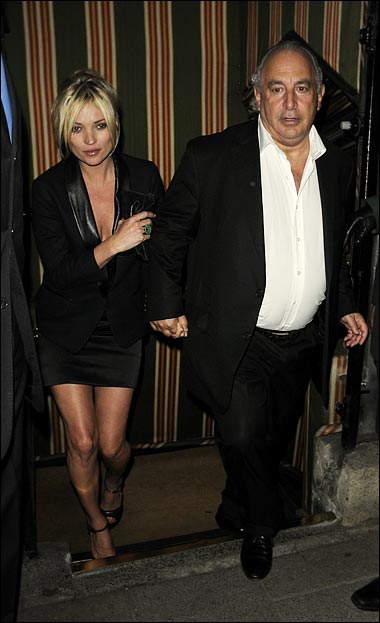 На 57-летие знакомого аристократа Филипа Грена (Philip Green) Кейт одела то же платье и смокинг с кожаными лацканами, что и ранее на фотосъемку к Иву Сен-Лорану. Причем, бюстгальтером Кейт пренебрегла, демонстрируя вываливающуюся грудь всякий раз при посадке в авто.