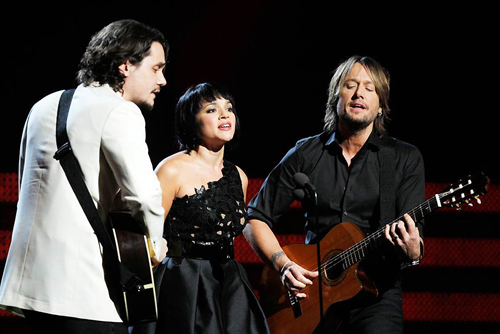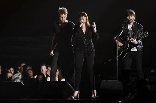 Группа «Lady Antebellum» (слева направо): Чарльз Келли, Хилари Скотт и Дэйв Хэйвуд отдали дань Тедди Пендерграссу, исполнив его песню «If You Don't Know Me By Now». Затем они плавно перешли к исполнению собственных песен – «American Honey» и «Need You Now».