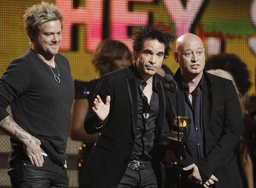 Поп-группа «Train» принимает награду за лучший поп-дуэт или трио за свою песню «Hey, Soul Sister».