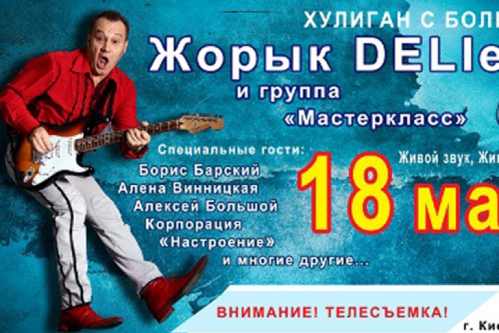 18 марта в киевском клубе «Космикс» состоится концерт Жорыка DELIева и группы «Мастеркласс». Конечно, как всегда, живой звук, море позитива, драйва и хулиганства с большой буквы «Х». Но главное не это… Главное, что во время шоу будет проводиться профессиональная видеосъемка и не только самого концерта и артистов, но и зрителей, которые могут стать одними из главных героев этого нового видеомузыкального проекта. Наверняка всем хорошо знакомы дуэтные песни и клипы Алены Винницкой и Жорыка Делиева «Тумба-буги», «Злые клоуны» Алексея Большого и Жорыка. Но не все знают, что Делиев выпустил три альбома: «Хулиган с большой буквы Х» (Moon Records 2005), «Дубда» (Moon Records 2007) и «Небесный поезд» (Moon Records 2008).
