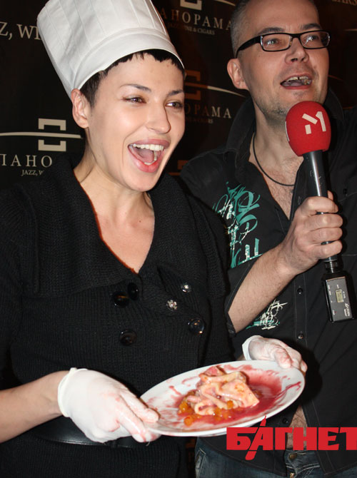 Пока звезды жарили блины в окружении фото и видеокамер, успевая в перерывах между готовками давать интервью, на противоположном конце зала своим умением готовить хвастала ведущая, прости Господи, кулинарного шоу «Булки», Валерия Бардо. Ее рецепт не отличался особой сложностью и уж тем более эстетичностью: готовый блин был облит джемом и растерзан пальцами ведущей, предварительно облаченными в медицинские перчатки. «Мне нужен мужчина, который не будет требовать от меня умения готовить», - комментировала Валерия на камеру.