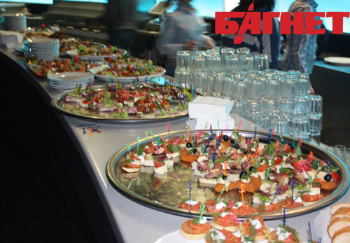 Фуршетные столы изобиловали едой и питьем