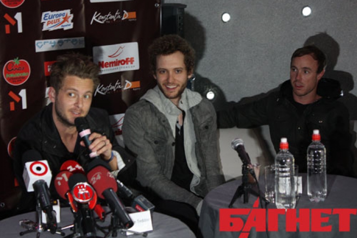 В том, что концерт, заявленный на 21-00 начнется вовремя, надеяться не приходилось, однако расстроиться по этому поводу мы не успели. Примерно в то же время, как концерт должен был начаться, музыканты дали пресс-конференцию на которую собрали украинских журналистов. Группа появилась в полном составе и в определенно хорошем расположении духа. Правда, на наличие музыкантов внимание практически никто из журналистов не обращал, неизменно задавая вопросы лидеру группы Райану Теддеру. Он мужественно держал оборону в одиночку, давая пространные ответы, а иногда даже юморил. К примеру, на вопрос, сколько стоят ваши песни, лидер OneRepublic вначале отшутился: «6,50, как раз на чизбургер» и лишь потом добавил: «Для меня песни – это мое творчество и когда я их пишу, я не думаю о том, как создать такую песню, чтобы ее впоследствии можно было продать подороже».