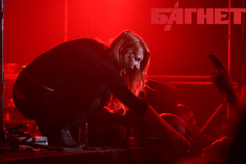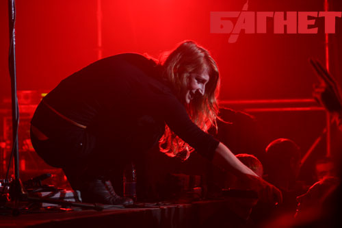 Добраться до площадки, расположенной не то чтобы в центре, но и не на окраине – на Московском проспекте, в строго назначенное время можно было разве что на метро. Город, как всегда стоял. Причем стоял намертво – как советские войска под Москвой в 1941 году. Опаздывая на предательские 15 минут, молю Бога, чтобы артисты не начали без разогрева, или хотя бы припозднились часика на пол – они же ведь тоже автотранспортом добираются, а значит, пробок им точно не избежать. Встретив у входа в «Альта экспо» длиннющую очередь, я поняла, что мои молитвы были услышаны. Однако я даже не подозревала насколько. Часы показывали 20-00, желающих попасть на концерт на улице практически не осталось, а концерт даже и не думал начинаться. На сцену вышла какая-то неизвестная команда в качестве разогрева. Громко отыграв несколько песен, они спросили у собравшихся зрителей готовы ли они к выходу на сцену знаменитых гостей и удалились, оставив после себя надежду что долгожданный концерт вот –вот начнется. Но и в 21-00, спустя два часа, после заявленного в афише времени под сводами «Альта центра» было глухо, как в танке. В зобу начало спирать дыхание от возмущения. Услышав рядом: «Такого опоздания себе еще ни один артист не позволял» - понимаю, что негодую не только я. Пробки пробками, а за два с лишком часа можно было из отеля, в котором поселилась группа пешком дойти. И вот, когда точка кипения начала медленно, но уверенно подползать к своей критической отметке, а именно в 21.15, музыканты появились на сцене.
