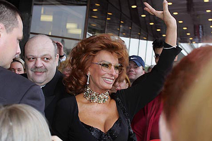 Софи Лорен в свои 76 лет, как всегда выглядела просто безупречно в черном платье Giorgio Armani покрытом камнями Сваровски. От такой чести знаменитость даже немножко смутилась.