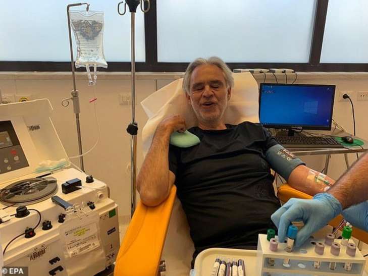 Журналисты также выяснили, что и 36-летняя жена Бочелли Вероника Берти перенесла болезнь, так как она тоже сдавала плазму в больнице.