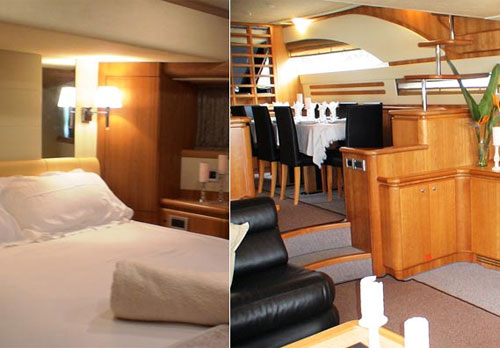 Во время пребывания на моторной яхте Ferretti 2006, молодожены обедали суши, особым сортом пармской ветчины и другими деликатесами.