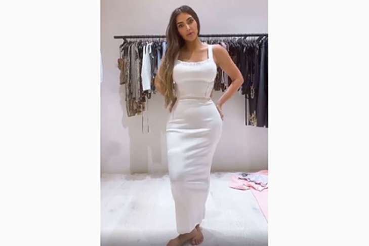На кадрах 40-летняя знаменитость примерила белое облегающее платье с широким вырезом на спине. Кардашьян рассказала, что всегда надевает под наряды белье собственного бренда Skims, которое подчеркивает ее тонкую талию и сглаживает недостатки на широких бедрах. Так, для описанного образа она выбрала новое корректирующее трико телесного цвета с открытой спиной стоимостью 68 долларов. Ролик набрал более 3,4 миллиона просмотров.