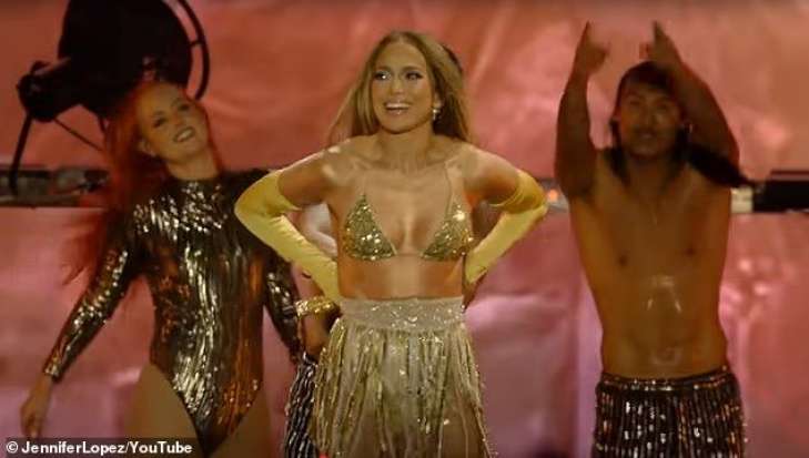 Лопес вышла к зрителям в золотом бикини и юбке с бахромой – ее позвали на сцену, чтобы публика спела Happy Birthday для артистки, которая недавно отпраздновала свое 56-летие.