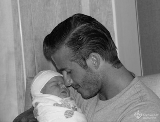 Его жена, известная певица Виктория Бекхэм опубликовала в своем блоге на Twitter фото новорожденной. На одном из снимков Дэвид Бекхэм держит на руках Харпер Севен.