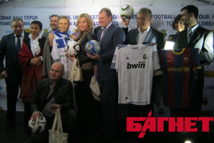 На аукционе были выставлены мячи и футболки с подписями игроков клубов Испании и Украины: «Реала», «Барселоны», «Динамо» и «Шахтера».