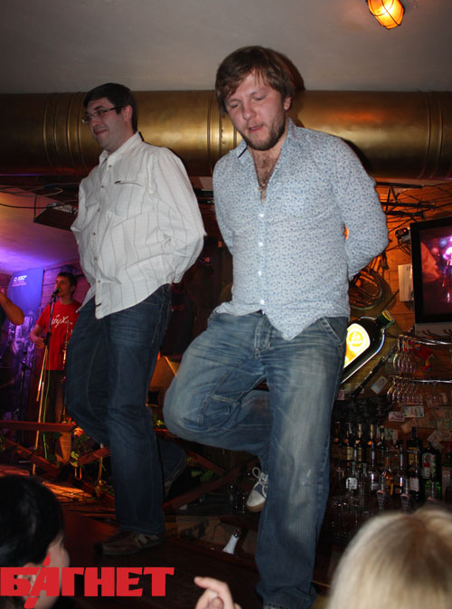 Апогеем вечера стал конкурс на лучший ирландский танец, который «Леприконсы» провели среди зрителей, пригласив двоих парней на барную стойку, где им и предстояло почувствовать себя Майклом Флетли. Не знаю как на счет Флетли, однако в определенные роли двум конкурсантам вжиться пришлось. Каждому из них Илья дал кодовые имена. Первый поднявшийся на сцену смельчак был назван «Александр Радионович Барадач» (по Михаилу Галустяну), а второго нарекли «Билом Гейтсом».