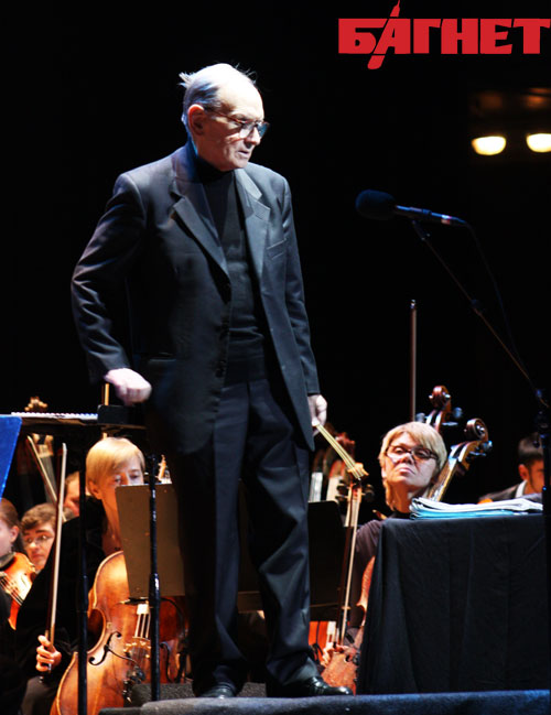 Концерт начался с получасовым опозданием. Маэстро появился на сцене, как только открылся занавес. Сухонький, небольшого роста, в мешковатом сером костюме. Эннио поклонился публике, волевым жестом дал понять, что аплодисментов достаточно, повернулся к оркестру и взял в руки дирижерскую палочку.