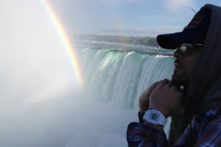 В своем микро-блоге певец сначала пожаловался на плохую погоду: «Канада встретила дождем!». А потом увлекся отдыхом и объявил: «Еду на Ниагарские водопады! Хорошо мне!».