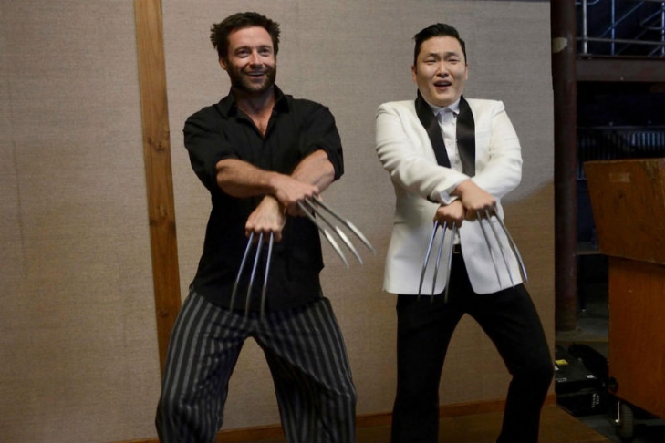 Интересно, что же все-таки общего у человека-икс и новой интернет-сенсацией из Южной Кореи, певца PSY? Музыкальный исполнитель прилетел в Сидней со своим промо-туром как раз в то время, когда у Хью Джекмана проходят там съемки очередных эпизодов новой серии про «Росомаху». В рамках всевозможных встреч со знаменитостями, певец приехал и на съемочную площадку к Хью, где они оба исполнили танец в тиле Gangnam Style, который придумал PSY для того самого клипа, котрый попал в книгу рекордов Гиннеса. Почему? Потому что собрал самое большое количество «лайков» за всю иторию Youtube - более четырех миллионов, а просмотров - и подавно больше, почти полмиллиарда.