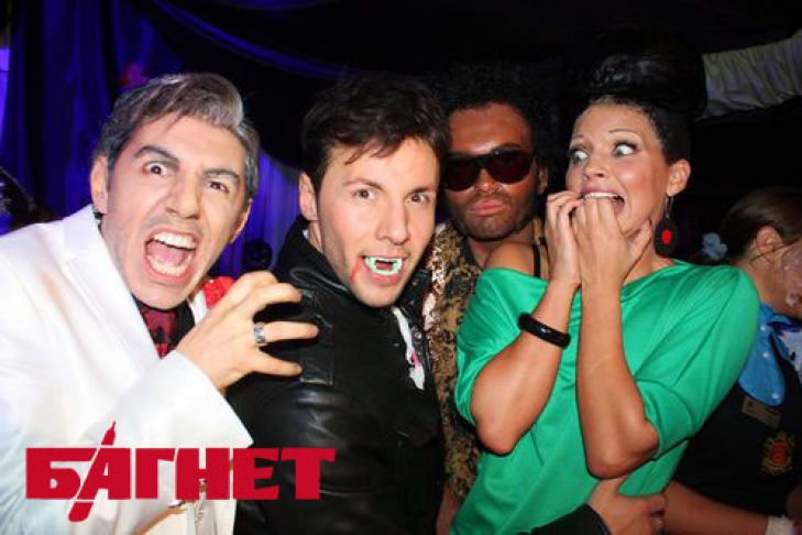Меньше всего напряглись, пожалуй, неожиданно нагрянувшие на вечеринку Александр Кировошапко, Тимур Родригез и Настя Задорожная. Они приехали в ресторан сразу после съемок очередного выпуска передачи «Шоумастгоуон», причем непосредственно в образах, которые для них придумали на программе. Тимур весьма реалистично изображал из себя Сосо Павлиашвили, а Настя – певицу Елку. А вот Сашу Кривошапко, мы едва признали. Он приехал в ресторан в образе так сильно ожидаемого у нас еще несколько месяцев назад Ленни Кравитца. Правда настроен певец был довольно скептически, сообщив, что Хэллоуин не празднует, поскольку не понимает в чем его суть и считает все происходящее неправильным. В принципе, я готова подписаться под каждым его словом, но против толпы, как известно не попрешь, да и мнения моего никто не спрашивал.