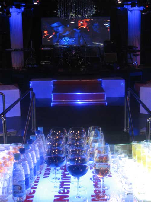 Так и осталось не известной причина по которой начало выступления музыкантов затянулось на добрых 40 минут. Артисты вышли на сцену лишь тогда, когда публика, повеселевшая от алкогольных угощений, справилась с бутербродами - канапе и фруктами, предложенными организаторами.