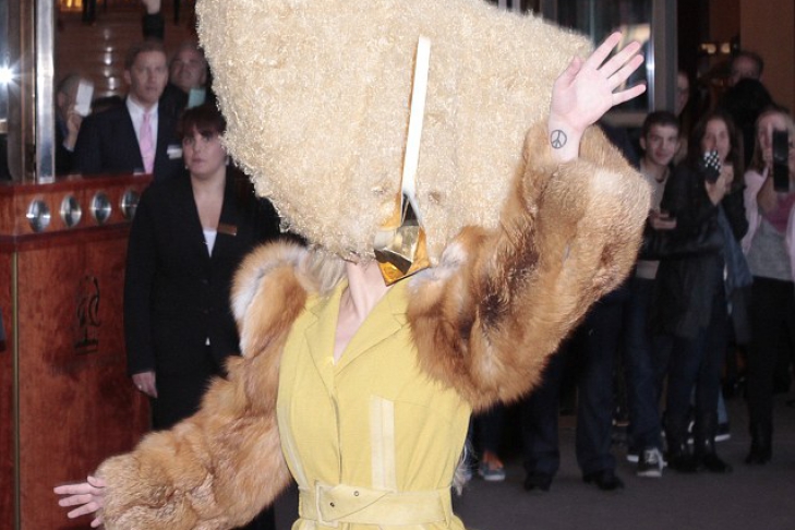 Эпатажная певица не перестает радовать своими эксцетричными выходками. Среди ее последних приобретений – чемодан (или волосатая сумка), который певица надела на голову. Все привыкли видеть ее в эпатажных костюмах и с необычными прическами. В послужном списке Леди Гаги было все: и мясное платье, и наряды на голое тело, и желтые волосы и несуразный макияж.