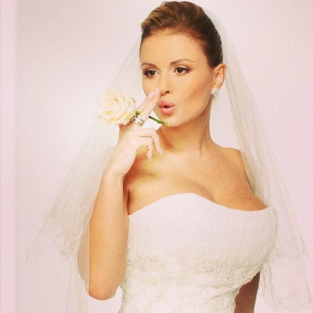 На снимке Анна Семенович держит в руке белую розу как сигарету. Волосы «невесты» уложены в гладкую прическу, а голову украшает фата до плеч. Белый корсет платья, расшитый жемчугом, подчеркивает пышные формы певицы.