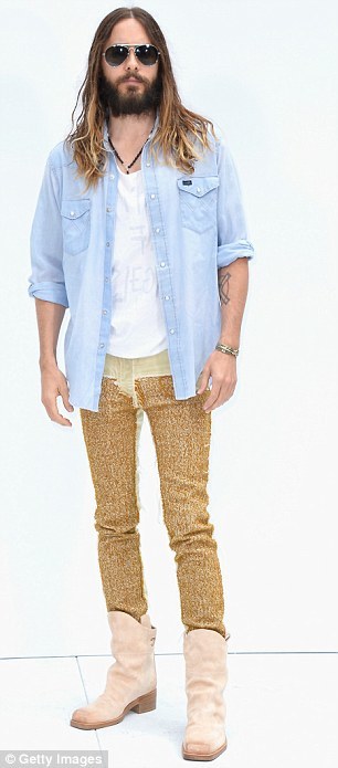 Актриса остригла свои длинные каштановые волосы и перекрасила их, а одета она была в несколько странного вида прозрачные белые брюки и топ. Также на показе были замечены Джаред Лето и Нина Добрев.
