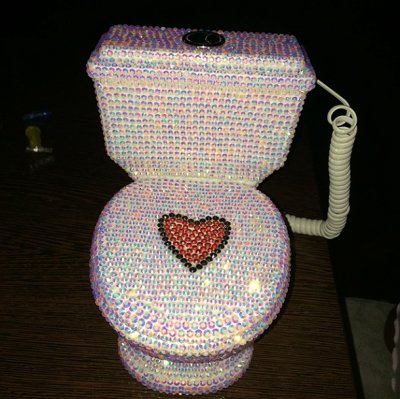 Особенно позабавила читателей страницы Волочковой покупка ее дочери – Ариадны. Девочка привезла в Москву оригинальный телефонный аппарат, выполненный в виде гламурного унитаза со стразами.