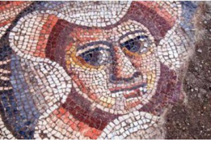 Як правило, мозаїки в синагогах зображували біблійні сюжети і героїв, наприклад Самсона, в даному ж випадку сюжет досить оригінальний. На артефакті прекрасно збереглося обличчя дівчини, зібране з маленьких каменів тілесного кольору і оточене купідонами. В руках у крилатих богів любові знаходяться різні міфологічні предмети, а також експресивні маски, які є символами бога веселощів і вина Діоніса, повідомляє "ВінницяОк", з посиланням на "ГазетаЮа".