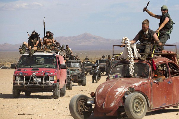 В Южной Калифорнии собрались фанаты фильма «Безумный Макс» для того, чтобы погрузиться на три дня в атмосферу постапокалиптического беззакония и насилия. В мероприятии приняли участие более 700 поклонников этого фантастического фильма и несколько десятков модернизированных автомобилей. Стать «Безумным Максом» может любой желающий при наличии билета и тематического костюма.