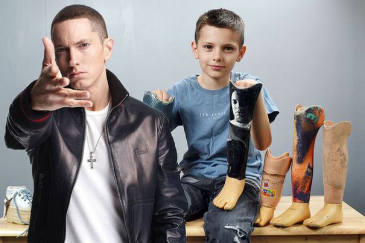 Музыканта очень тронула история 10-летнего мальчика по имени Тиджей Штейн. Малыш родился с дефектом ноги и вынужден носить протез. А поскольку мальчик в восторге от творчества Эминема, его протезы украшены фотографиями любимого певца. Узнав об этой истории, рэппер просто не мог ее проигнорировать.