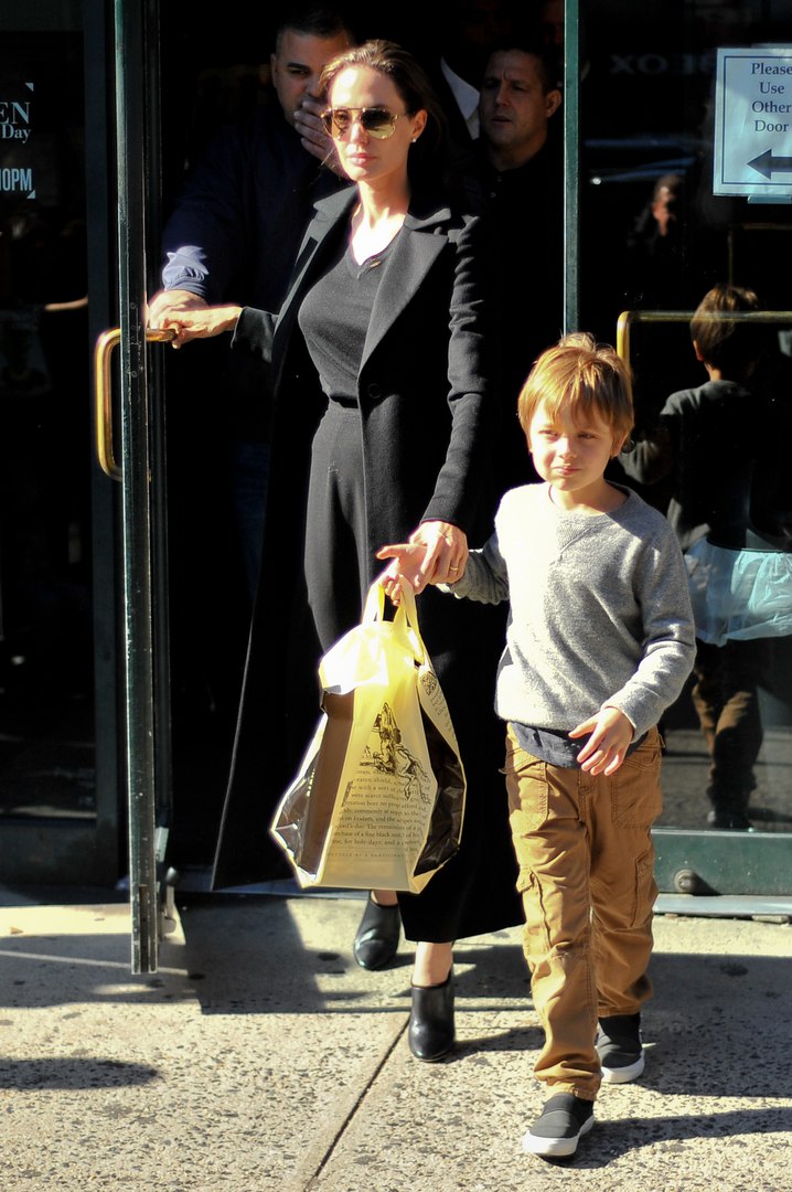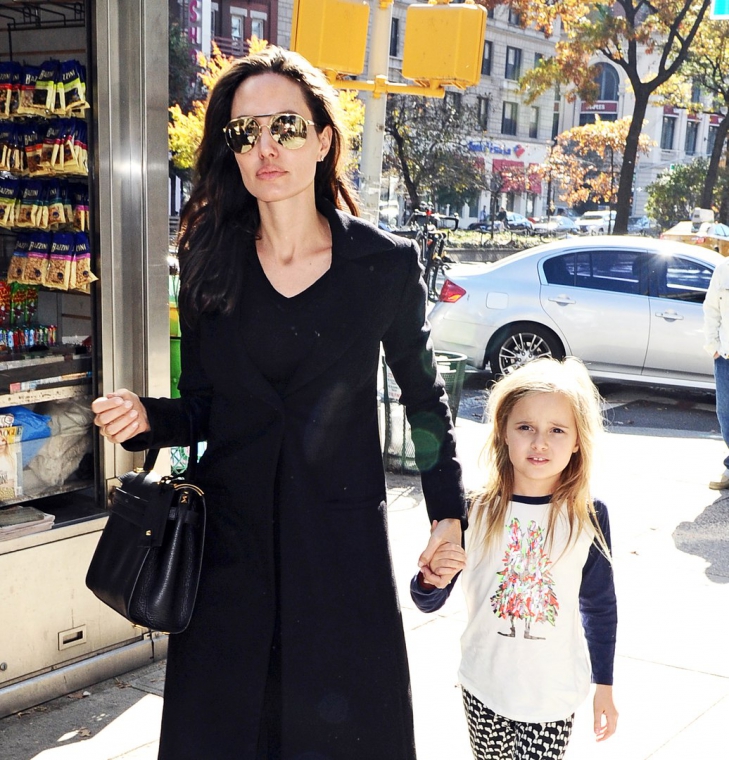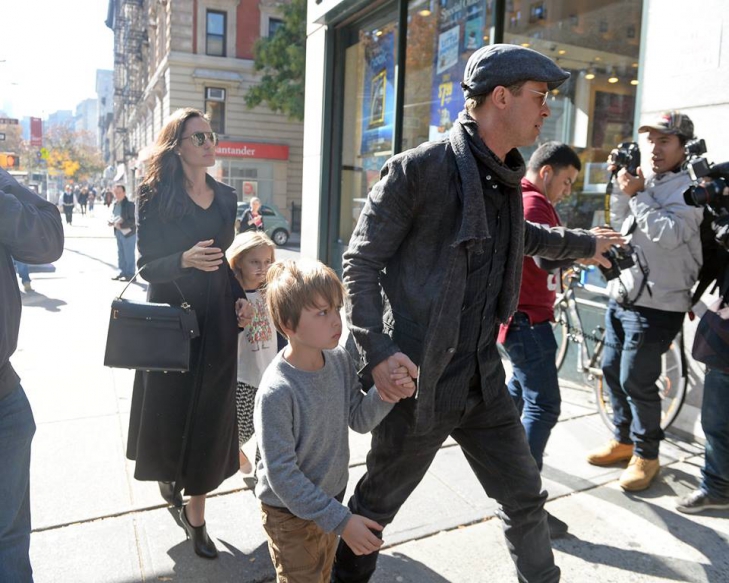 Анджелина Джоли и Брэд Питт с близнецами Вивьен и Ноксом в Нью-Йорке
