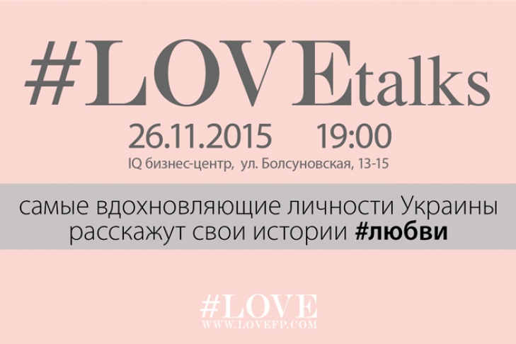 26 ноября в рамках благотворительного мероприятия #LOVEtalks вдохновляющие личности страны расскажут свои истории любви, поделятся жизненными успехами и поражениями, вдохновят на движение и достижение целей. Организатором проекта #LOVEtalks выступила Ксения Карпенко, украинский дизайнер, создающий одежду под украинским брендом #LOVE.