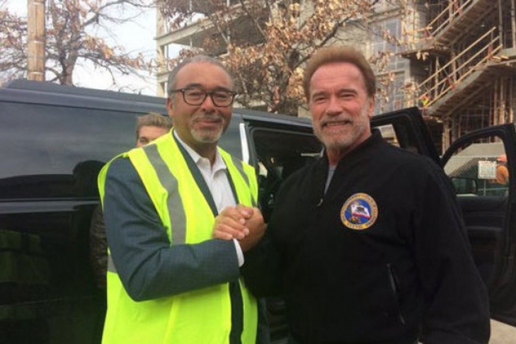 Актер Арнольд Шварценеггер приехал в столицу американского штата Огайо Колумбус для съемок в фильме, посвященном авиакатастрофе над Боденским озером.