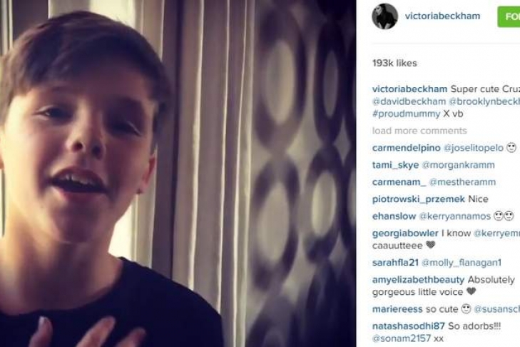 Поющего Круза Бекхэма сравнили с канадским певцом Джастином Бибером. Видео опубликовала в инстаграме дизайнер и экс-участница группы Spice Girls Виктория Бекхэм.