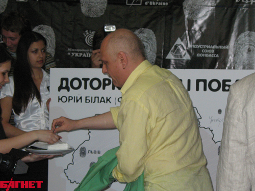 Презентацию посетили и озвучившие тактильные фотографии знаменитости. Им предложили поставить свои отпечатки пальцев на специальном плакате, который вместе с фотовыставкой проедет по Украине. В конце тура плакат с отпечатками организаторы выставят на благотворительном аукционе.
