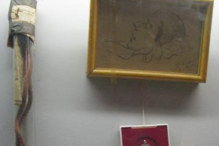 Также предлагается медальон с локоном волос Есенина, срезанным матерью поэта после его смерти и репродукцию одного из последних портретов поэта, выполненного литературным объединением « Никитинские субботники».