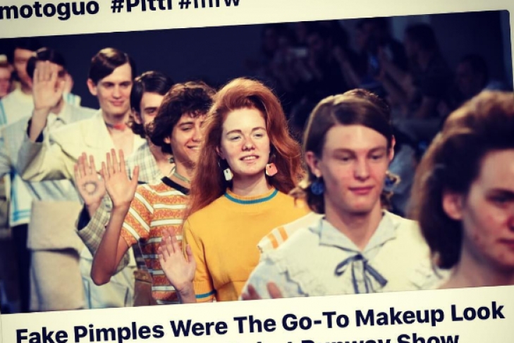 Малазийский дизайнер Мото Гуо во время Недели моды в Милане немного шокировал публику смелым макияжем, нарисовав своим моделям прыщи на лице.