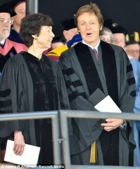Недавно сэр Пол МакКартни был удостоен звания почетного доктора музыки Йельского университета, сообщает Daily Mail . На торжественную церемонию экс-битл пришел с 47-летней Нэнси Шевелл. Впервые с момента окончания бракоразводного процесса с Хизер Миллс, МакКартни решился публично появиться со своей новой подругой.