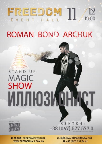 11-го декабря на сцене FREEDOM Event Hall самый популярный иллюзионист Украины ROMANBONDARCHUK презентует свою новую шоу-программу "Stand Up Magic Show "ИЛЛЮЗИОНИСТ", сообщает "Багнет".