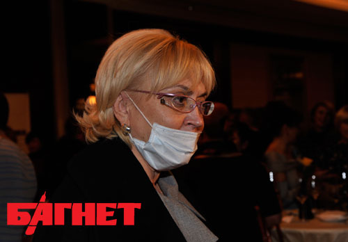 Однако среди гостей показа все же была дама в защитной маске. Это - глава Госкомитета Украины по вопросам регуляторной политики и предпринимательства Александра Кужель. Правда, повязала маску чиновница только на рот. Нос почему-то оставался все время открытым.