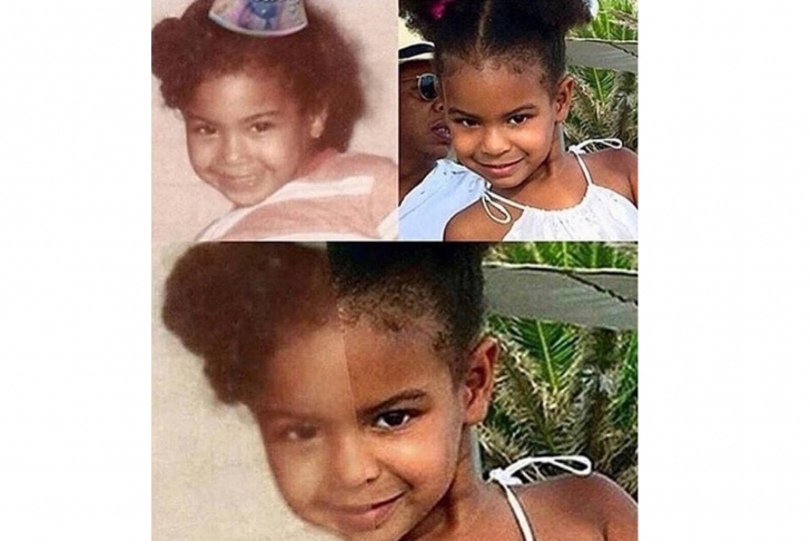 Основной эффект этого коллажа в том, что лица Бейонсе и Блу с двух разных снимков абсолютно естественно слились в одно лицо.