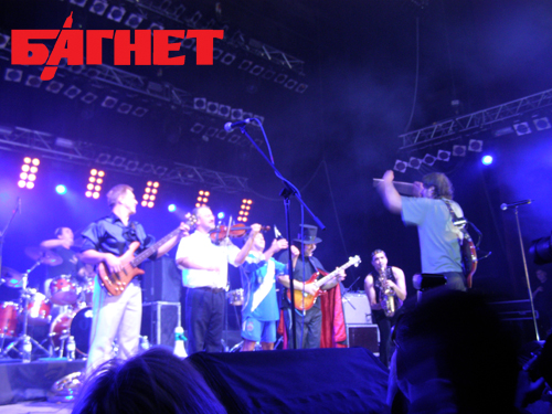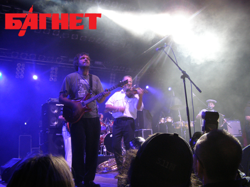 Хэдлайнером первого дня фестиваля была группа из США Gogol Bordello. Gypsy-punk от Евгения Гудзя и компании сложно назвать просто концертом - это шоу, кабаре, карнавал, специально продуманное творческое безобразие. В составе группы музыканты из России, США, Израиля, танцовщицы экзотического происхождения, куча инструментов и реквизита - горячий микс панка, рок-н-ролла, балканских романсов, российских и украинских фольклорных мотивов. «Gogol» - потому что играть подобную музыку под брендом великого славянского писателя символично. «Bordello» - потому что при этом по аналогии с итальянским «bordello» («клубом для джентльменов») им позволено все.