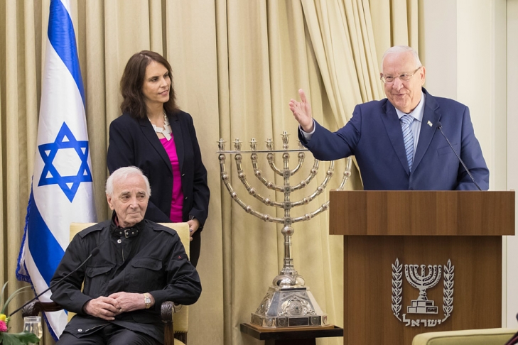 Шарль Азнавур на торжественной церемонии в резиденции президента Израиля