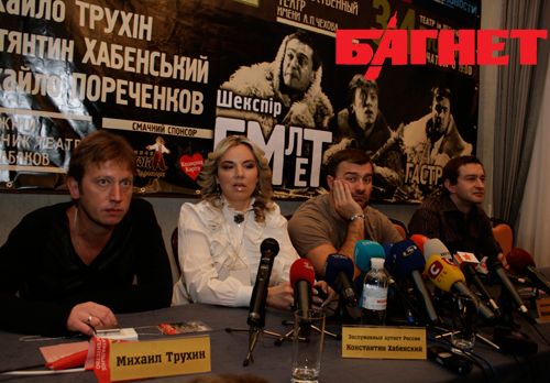 Константин Хабенский не любит представителей прессы. Он очень редко дает интервью, практически не участвует в пресс-конференциях и всячески избегает просьб о комментариях. Об этом вспоминаешь, как только он протискивается в крохотный пресс-центр с видом человека, которого ждет стоматологическое кресло и с натянутой улыбкой садится у микрофонов. У его друга Михаила Пореченкова вид такой же, совершенно безрадостный, даже мученический. Хотя повод для встречи очень даже неплохой: в Киев на гастроли приехал МХТ им. Чехова с постановкой Юрия Бутусова «Гамлет» с участием актеров Михаила Трухина, Константина Хабенского и Михаила Пореченкова.