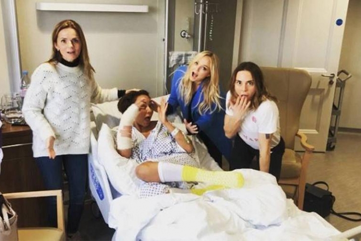 Позднее Мел Би опубликовала несколько фотографий из больницы. На одной из них пострадавшая находится в компании других участниц поп-группы — Джерри Хорнер (Холлиуэлл), Эммы Бантон и Мел Си.
