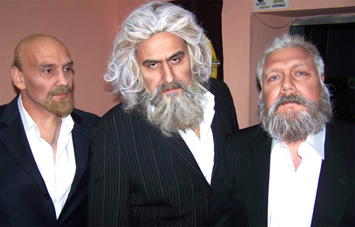 На съемочной площадке в образ вождя мирового пролетариата и в его боевого товарища Фридриха Энгельса перевоплотились музыканты группы Алексея Большого, сам же артист предстал перед нами в образе Карла Маркса.