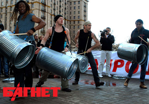 «Мы можем играть на всем, что попадает нам в руки. - Убеждает корреспондента «Багнета» участник коллектива Френди Моррис. - Спички, газеты, швабры, зажигалки, бутылки, пакеты, упаковки «Тик-так», кухонная утварь, ведра, мусорные баки и крышки от них — весь этот хлам верно служит нам музыкальными инструментами, которые с момента создания нашего коллектива, слышал уже весь мир. В Киеве мы впервые».
