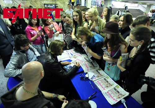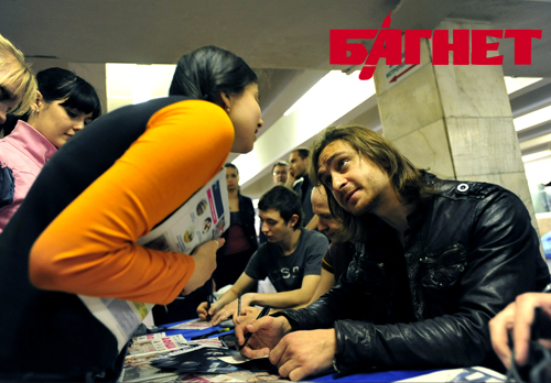 Сегодня, 14 мая, популярную украинскую рок-группу «С.К.А.Й» можно было увидеть в киевском метрополитене. В холле станции «Театральная» музыканты проводили автограф-сессию для всех желающих. Конечно, основную массу собравшейся публики составили молодые девушки.