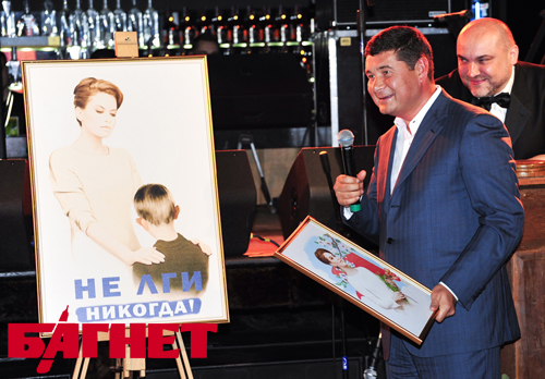 Неожиданно для самого себя сделал покупку и Президент Федерации конного спорта Украины Александр Онищенко. Во время торгов за плакат «Не лги никогда» с изображением нардепа Ирины Бережной руку заскучавшего Онищенко в шутку поднял Ващук.