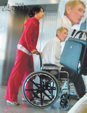 Приехавшие с актером друзья вывели Александра Гавриловича, окружив его плотным кольцом. Следом вышла супруга актера Юлия.