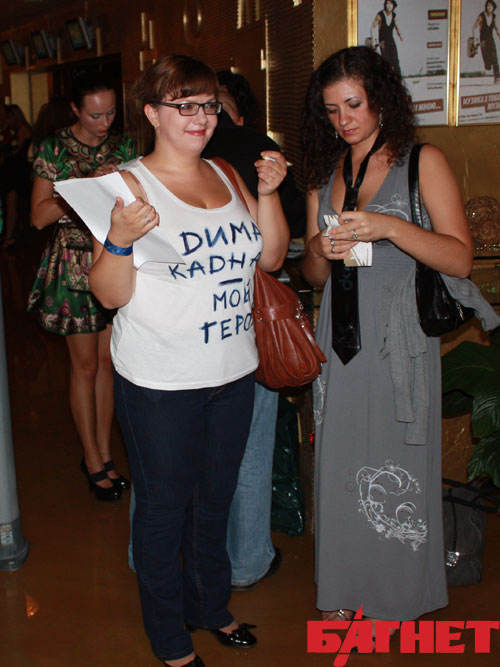 На входе всех встречала барышня с надписью «Дима Каднай – мой герой!» на футболке